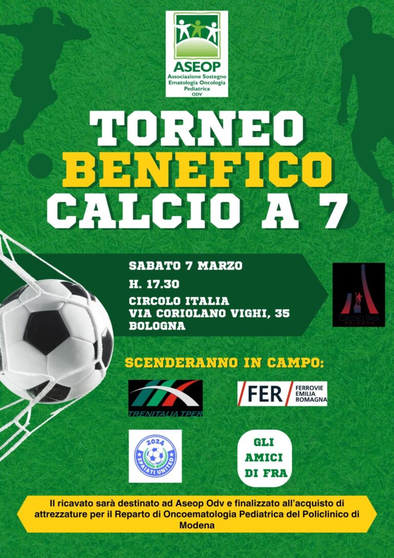 Quest’anno il ricavato del torneo sarà donato ad Aseop, associazione che dà assistenza ai bambini sofferenti di tumori e leucemie e alle loro famiglie. In particolare l’obiettivo è contribuire all’acquisto di attrezzature mediche per il reparto di Oncoematologia Pediatrica del Policlinico di Modena.